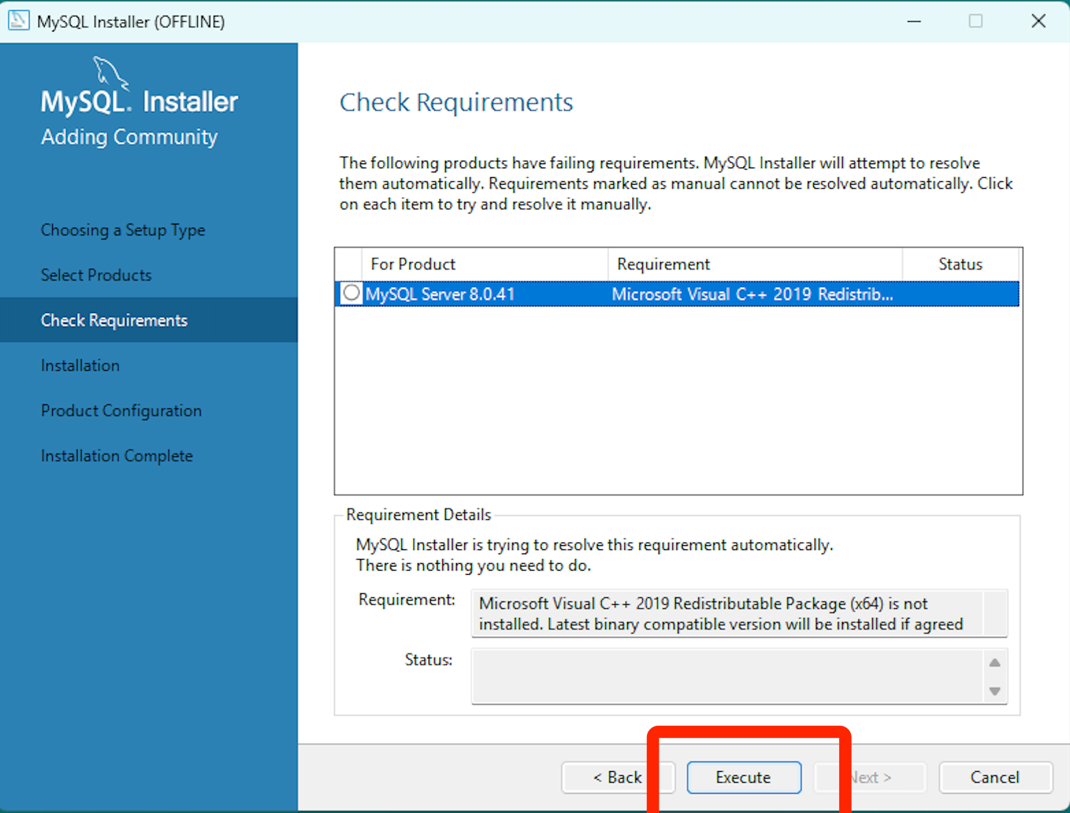 点击 “Execute” 按钮,系统开始安装 MySQL 8.0.41,安装过程中会显示进度条,耐心等待安装完成。