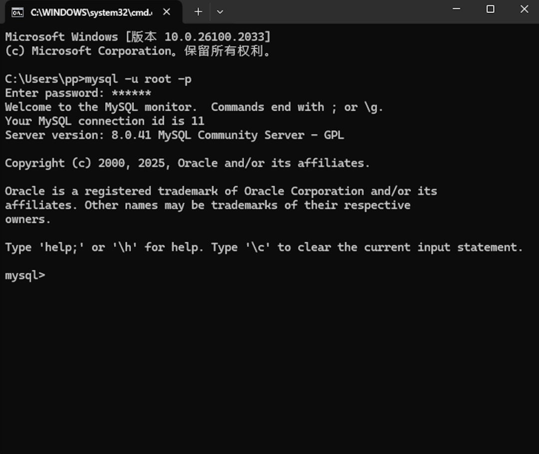 如果成功进入 MySQL 命令行界面,并显示 “Welcome to the MySQL monitor” 字样,说明 MySQL 8.0.41 安装成功。你可以开始使用CREATE DATABASE等命令创建数据库,进行数据管理操作了。
