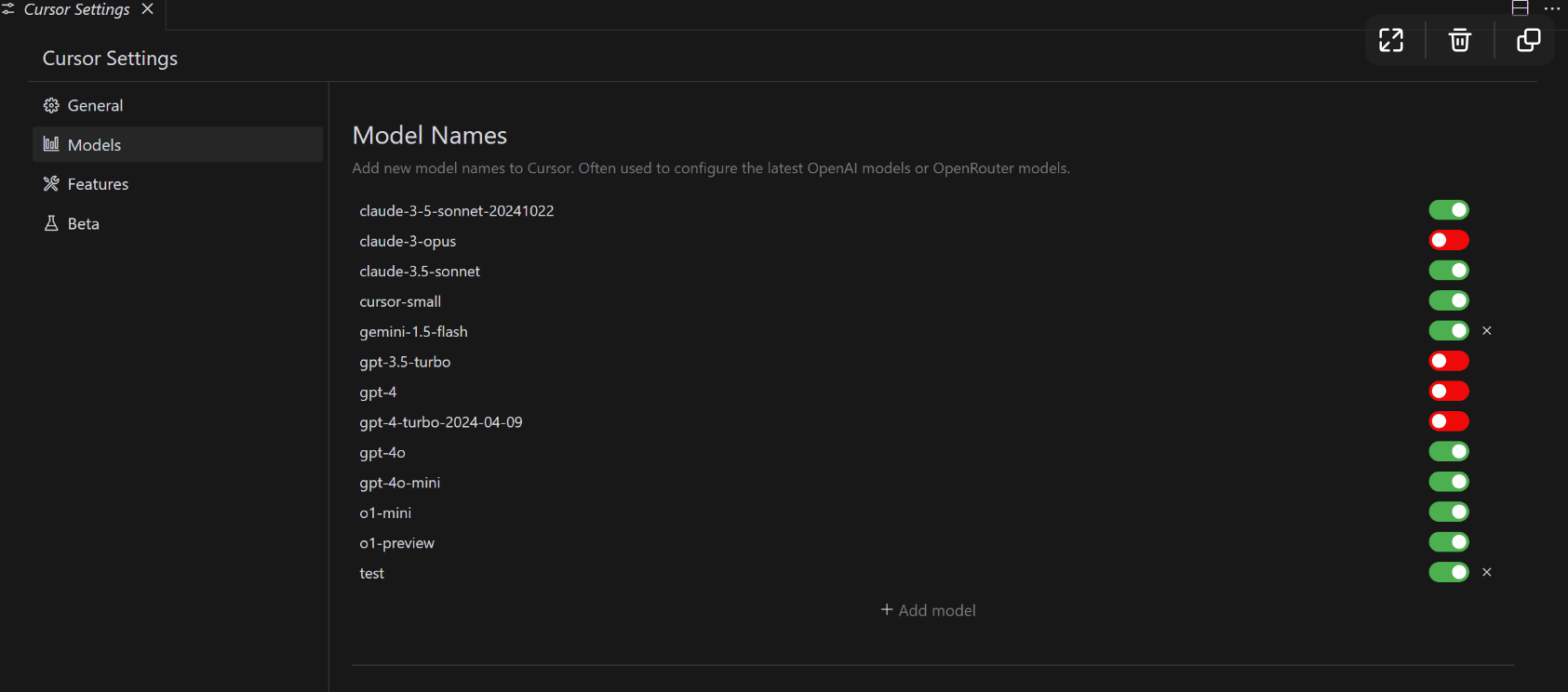 Cursor支持多个AI大模型,如claude,gpt,corsor-small或自定义AI模型。
