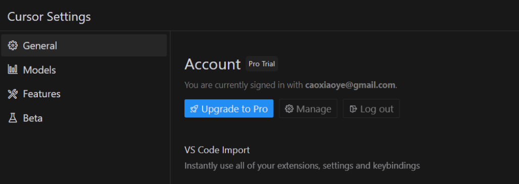 对于想要继续使用免费试用的用户,Cursor提供了一个非官方的方法来延长试用期: