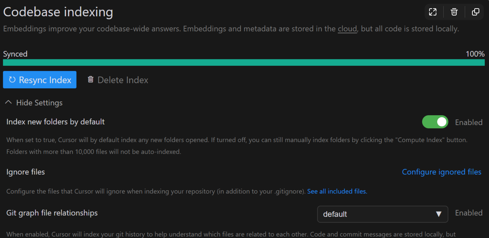 首先,来说说 Cursor 的codebase index功能。它会扫描并索引你的整个项目代码,让 AI 模型可以理解和引用你的代码库。也就是说,当你编写代码时,AI 可以基于整个项目的上下文,为你提供更准确的代码补全、错误检查和重构建议。很赞