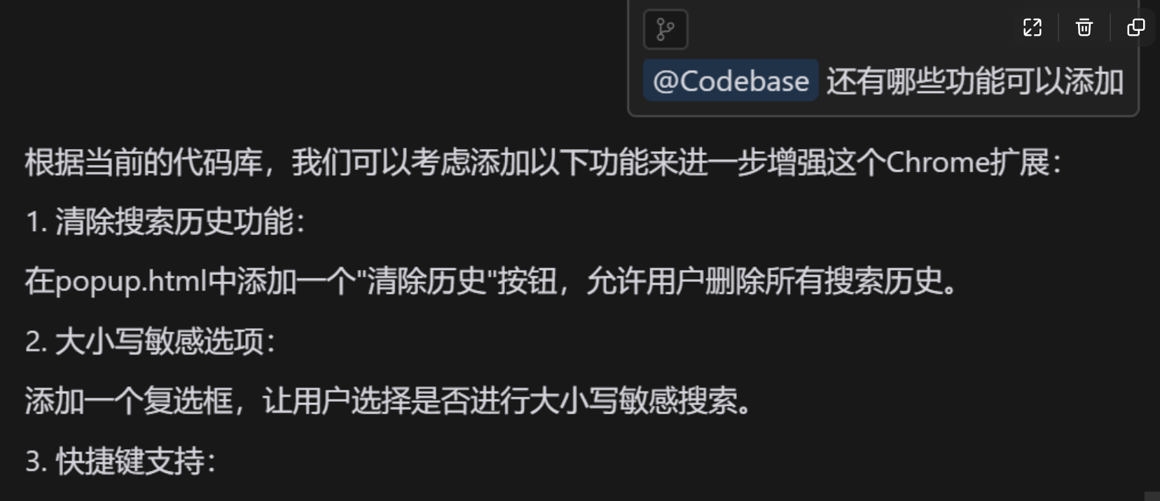 使用 Cursor 代码库聊天 时,@Codebase 会进行更详细的搜索。