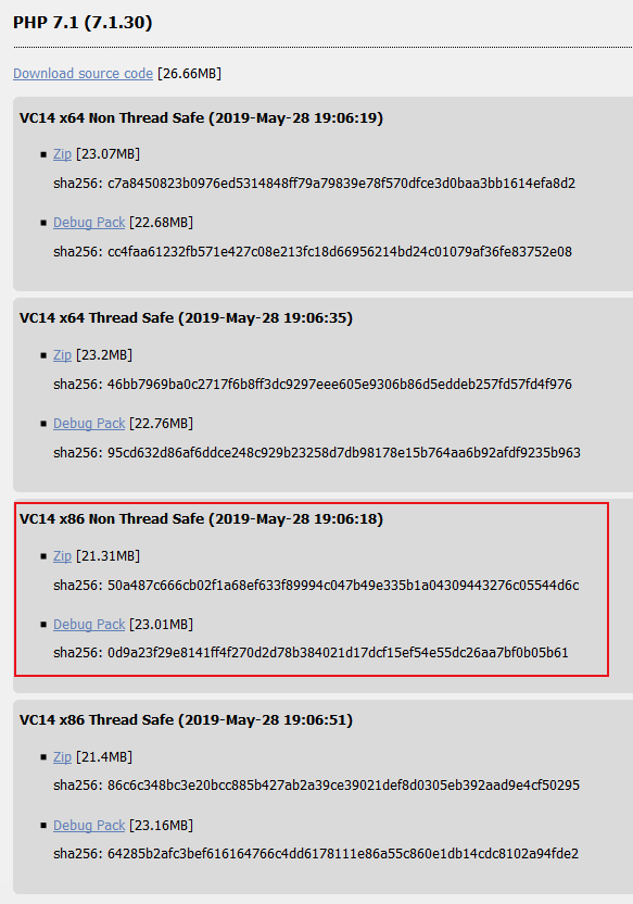 php-x.x.x-nts-Win32-VC14-x86.zip |