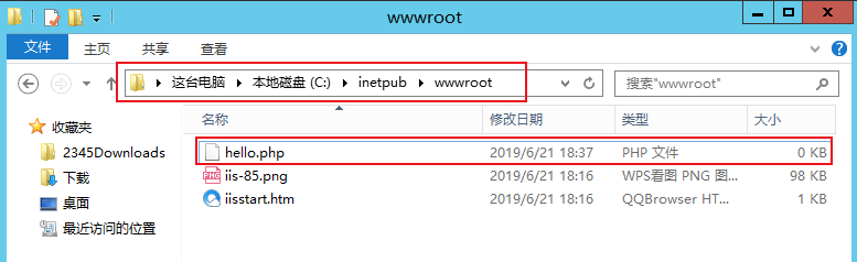 7.在操作系统界面,打开浏览器并访问 http://Windows云服务器的公网IP/hello.php