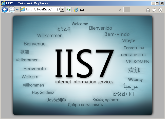 ,验证 IIS 是否安装成功。 若出现以下界面,即表示成功安装。