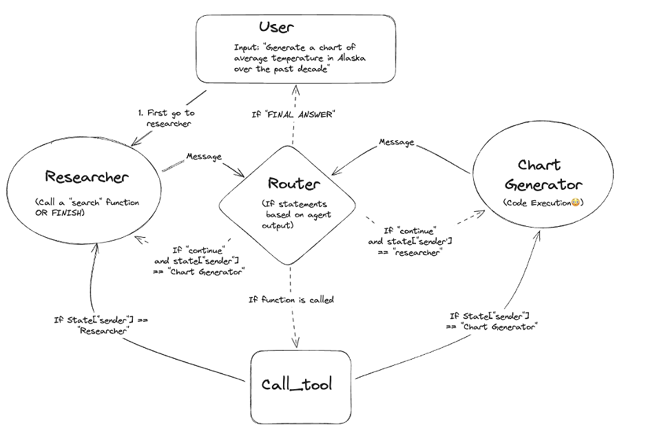 - 主管模式:所有智能体通过一个中心主管(Supervisor)进行协调,结构清晰,易于控制。