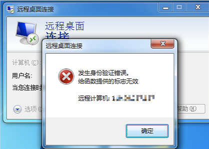 发生身份验证错误,给函数提供的标志无效,如下图所示: