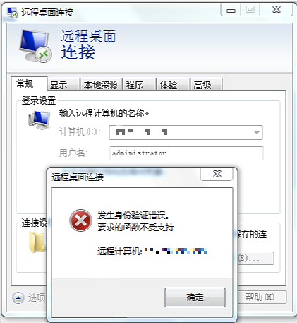 发生身份验证错误。要求的函数不受支持,如下图所示: