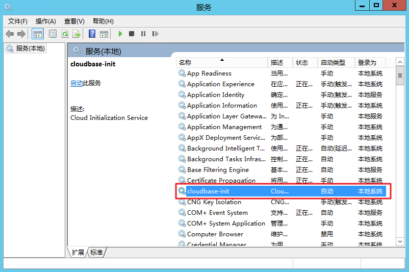 未设置,将 cloudbase-init 的启动类型设置为自动