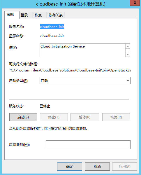 5. 常规页签,检查 cloudbase-init 的启动类型是否设置为自动