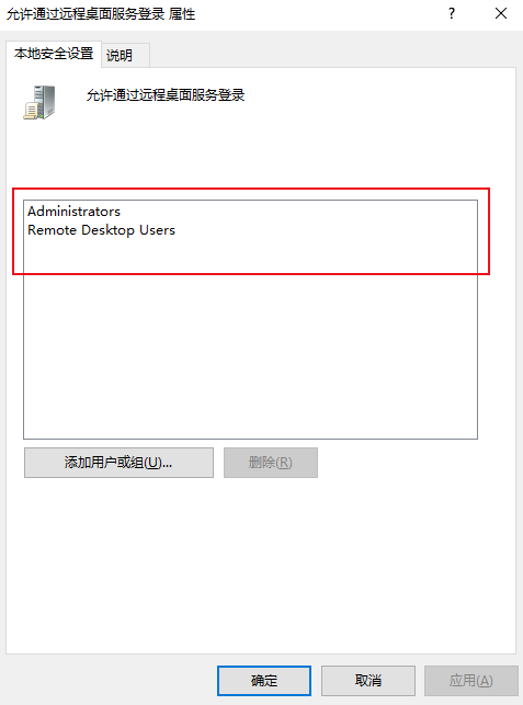 如果该用户在拒绝通过远程桌面服务登录的列表中,请将需要登录的账号从列表中删除,并重启实例。