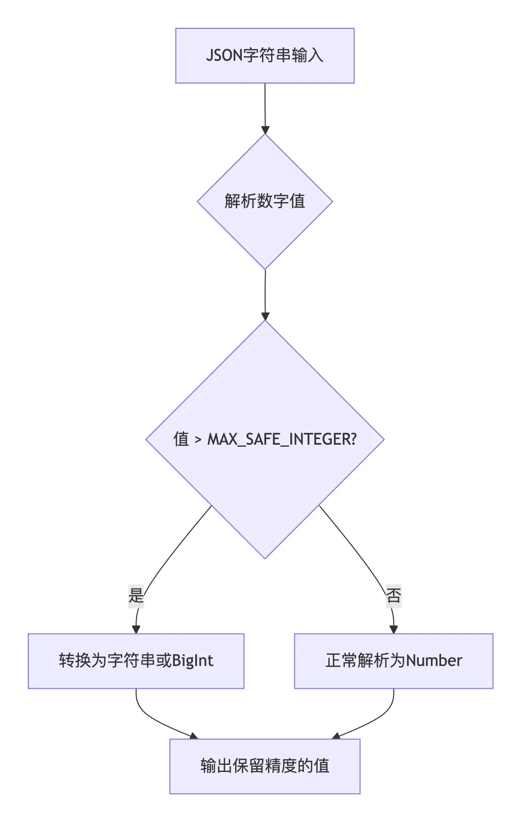 通过替换默认的JSON解析行为,拦截数字解析过程,对过大数值采用特殊处理。