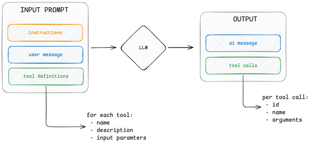 大模型能够理解“工具调用”的概念(有时也称为“工具使用”或“函数调用”)。你只需将“工具列表”作为提示词的一部分传递给模型,每个工具需要明确名称、描述和参数定义。大模型会根据用户的问题和可用工具,生成相应的调用指令。