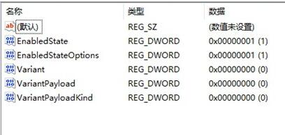 修改数值数据:新建5个“DWORD值”分别命名为“EnabledState、EnabledStateOptions、Variant、VariantPayload、VariantPayloadKind”然后数值根据图中数据进行设置。
