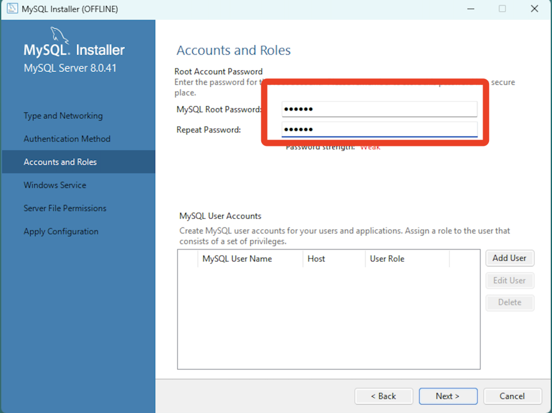 在安装向导的配置页面,选择 “Use Strong Password Encryption”(使用强密码加密),以增强数据库安全性。