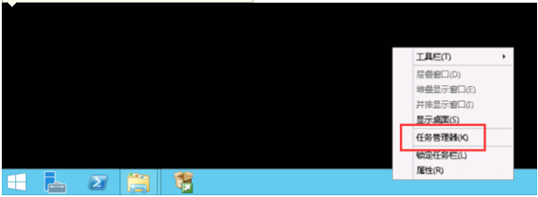 1. 在云服务器中,右键单击任务栏,选择任务管理器。如下图所示: