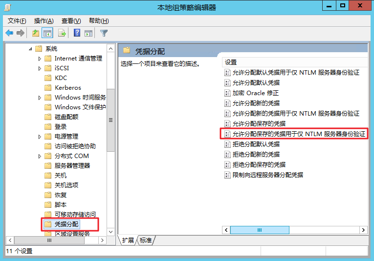 2. 找到并打开凭据分配中的允许分配保存的凭据用于仅 NTLM 服务器身份验证。如下图所示: